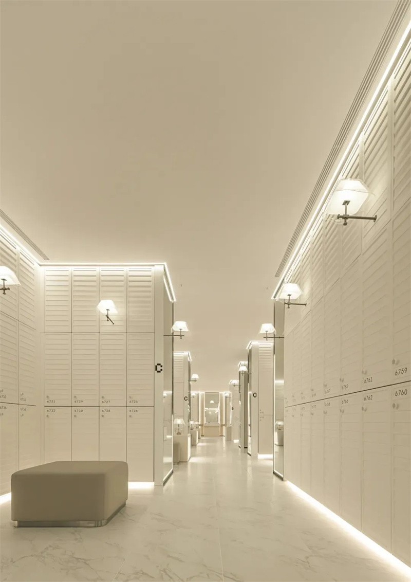 偶爾,塑造一種新的差異,等同于抹平一道舊的基因,在消解異質的過程中煥新。極致的純白,抹平了色彩的復雜性,精心控制著場景的造型語言,保證絕對簡化的視覺一致性。不摻雜多余的結構,空間被分割為一個個立體的盒子,由線型燈帶、通透壁燈描摹出整體輪廓。不同角度下的鏡面折射,具有重構場景的抽象效果,以空間折疊的循環(huán)記憶,復現時間之上的無限意境。