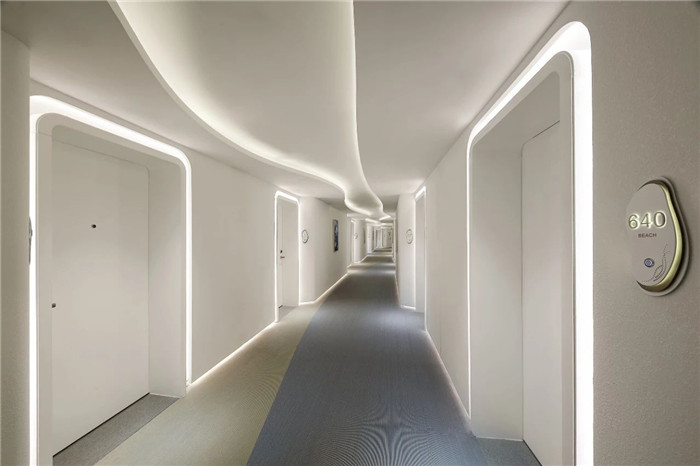 在三面環(huán)山一面靠海的海岸線上,建筑與山坡融為一體,景觀與環(huán)境相互契合。酒店室內(nèi)設(shè)計以海為題,運用前衛(wèi)自然的手法,勾勒出現(xiàn)代都市人在渡假時的內(nèi)心語境與情懷。度假酒店設(shè)計公司鐘情于觀察海洋的變化,憑借想象力,用詩意的形式將它呈現(xiàn)。團隊認為CZD HOTEL的設(shè)計重點不是材料的貴重與華麗空間,而是冒險與驚喜,這樣才能塑造出“活著”的狀態(tài)。公共空間以海浪為概念,完美調(diào)合大堂、酒吧、餐廳等功能場所,創(chuàng)造出一種多層次的柔和美學(xué)與凝固的動態(tài)景色。