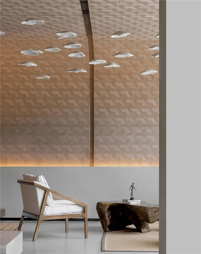 水池形成鏡面,形成了向下的虛擬路徑,尺度得以自由地延伸。內(nèi)部不是既定的幾何框架,而是延展的一體化結(jié)構(gòu),曲面了打破陳規(guī),有著抽象而哲學(xué)化的表現(xiàn)。溫和的光影自由流動,使空間充滿舒適妥帖的氛圍及無限的視覺可能性。