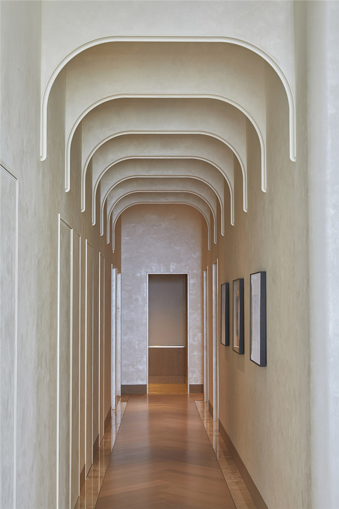 16層禮拜堂設(shè)計(jì)中,三維紋理木板將人們的視線引向上方的天窗,反射出美麗的Diana皇家大理石地面。禮拜堂的準(zhǔn)備空間可供婚禮的賓客滯留交談,沒有婚禮的日子里,這里會(huì)變成一個(gè)生活休閑吧,供游客享用。