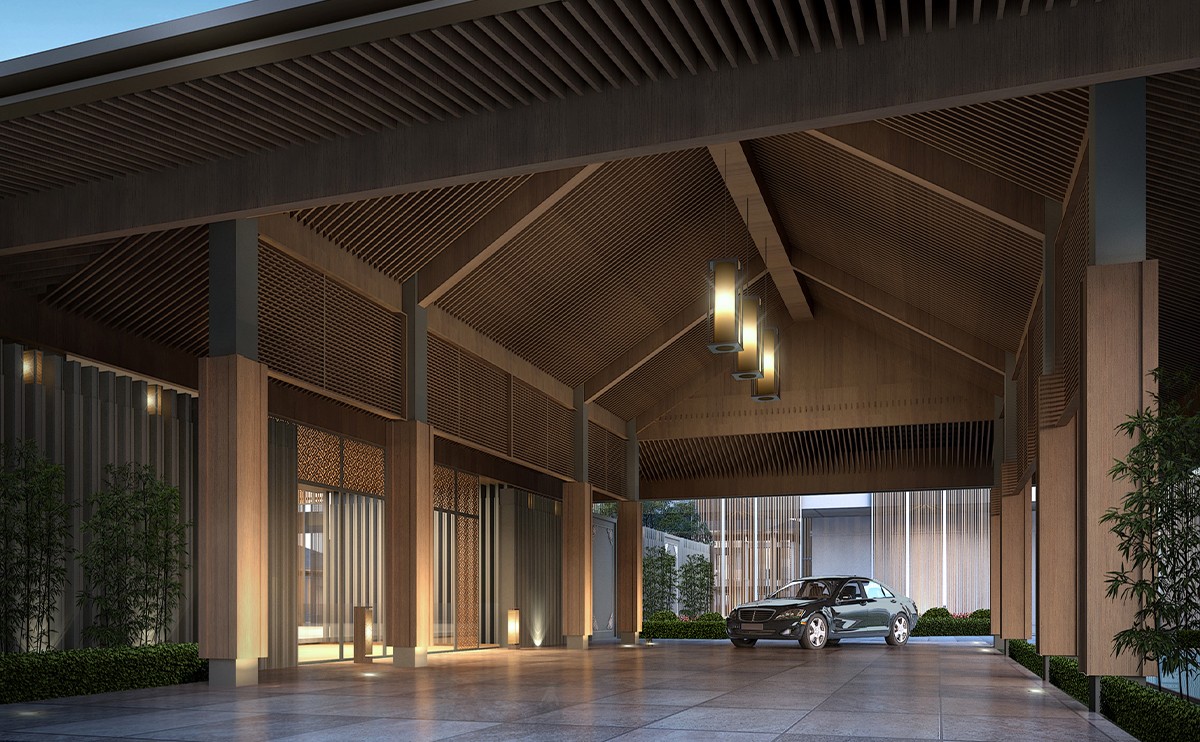 曾經(jīng)操刀阿麗拉烏鎮(zhèn)的GOA大象設(shè)計(jì)負(fù)責(zé)酒店的整體建筑規(guī)劃,將公園風(fēng)貌與現(xiàn)代建筑風(fēng)格融合,打造出具有典雅中式意蘊(yùn)的院落式建筑景觀。