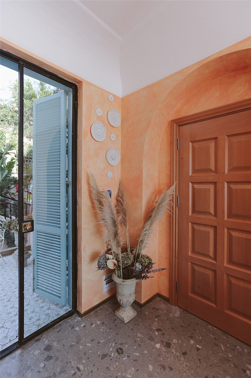 這些色彩的搭配和造型的選用是非常自由和大膽的。客房的墻壁色彩設(shè)計(jì)師還是主要參考意大利原汁原味的老房子,在意大利住過(guò)的一些老旅館,很有味道,墻壁復(fù)古的肌理和色彩,以及地磚并不是那么規(guī)整和完美的拼接,從中能感受到時(shí)間的痕跡。