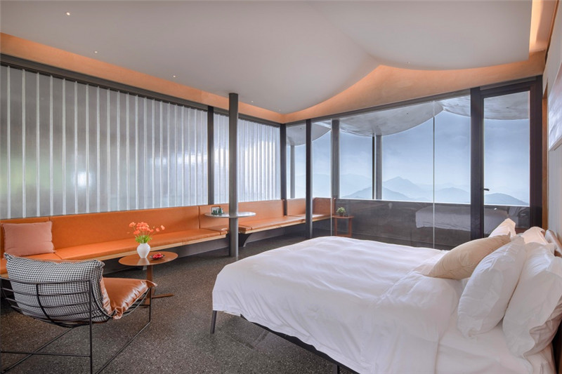 橋是富有詩意的人造物,連接和跨越:越澗,越塘,越層,是空間之間,身體層面的線性連接。在雨屋的頂層,有一間四面通透的大山亭,在屋中,將遠(yuǎn)山和身體連結(jié)。在檐下,于心中,留一片山水。