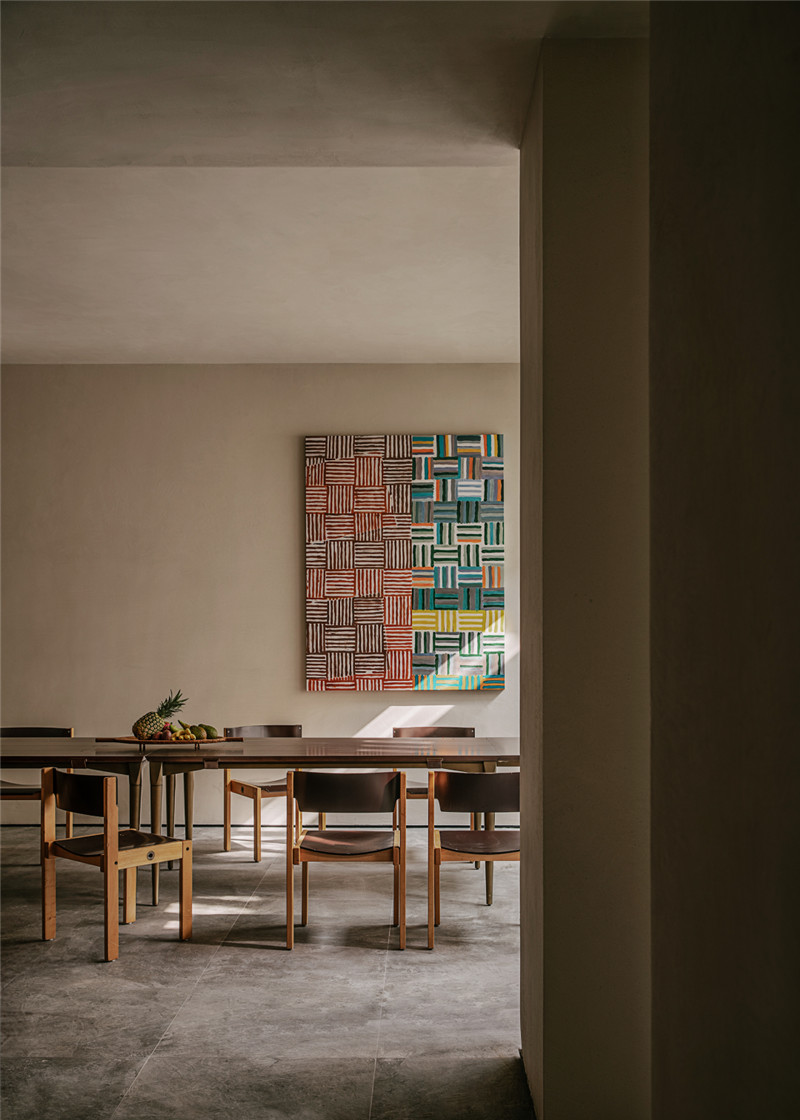 通過對空間、顏色、材質的塑造,當代家具與中古家具間的碰撞,賦予其優(yōu)雅、包容的氣質。至此,慢方舍既是一個展示性的居住空間,又是對生活的一種真實體現(xiàn)。