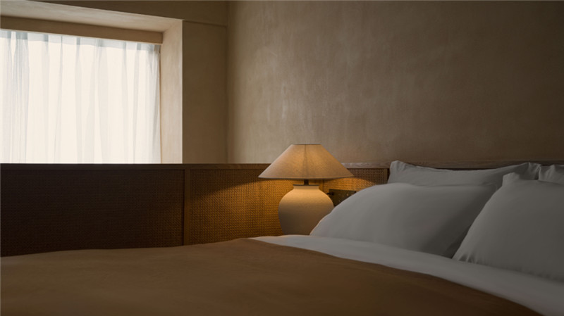 同時,整個酒店空間中所覆蓋的材質(zhì),也帶給我們極為樸實(shí)與自然的感受。進(jìn)一步讓我們的體驗(yàn)者忘掉其身處鬧市的現(xiàn)狀。有更好的氛圍去感受這慢生活的狀態(tài)。這,便是我們所構(gòu)建的安奈,一個城市處的秘境。