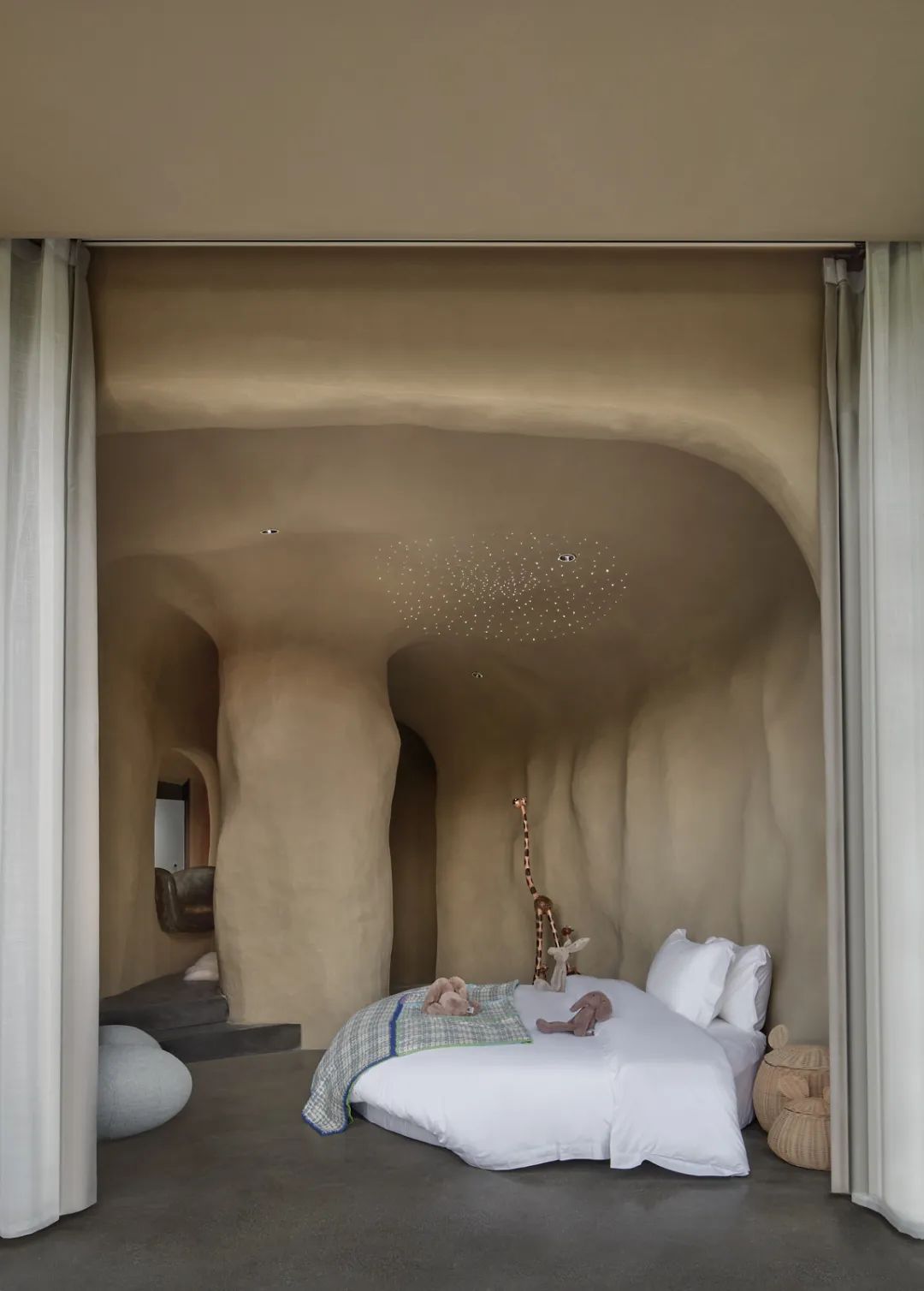 星光裝點洞穴里的兒童房,從呵護(hù)陪伴的需求的出發(fā),以圓弧線條為孩子帶來安全親切的舒適感。動物玩偶和滑梯設(shè)計讓童趣充斥在空間的每個角落,不需要過多的色彩修飾,以樸素的顏色帶領(lǐng)孩子親近真實的自然王國。